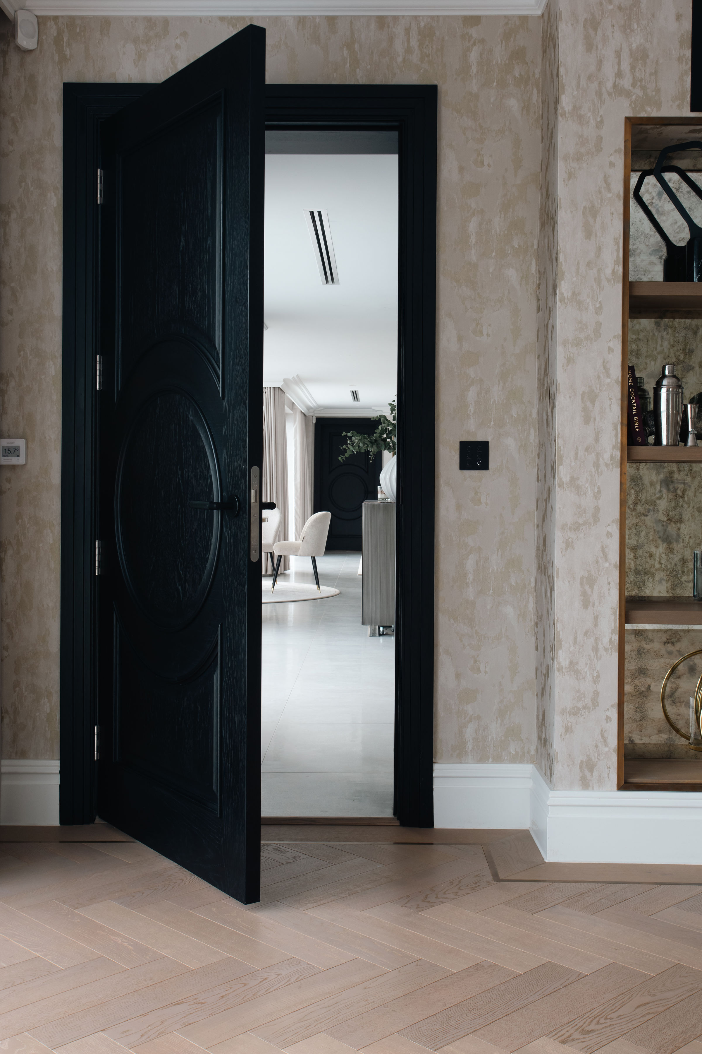 The distinctive curved design of the Lira TX model brought an additional layer of sophistication to the couple's already chic interior. Crafted with meticulous attention to detail, these doors not only accentuated the innate beauty of the wood but also elevated the overall sense of opulence and refinement within the home.